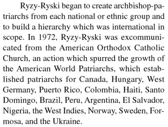 O problema é que ele tava fazendo isso meio que da cabeça dele. Então ele foi excomungado da AOCC em 1972, pouco antes de morrer. ¯\_(ツ)_/¯ [3] screenshot do texto na apon...