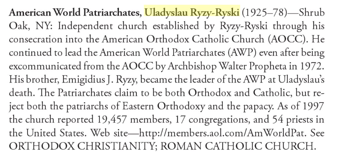Em 1967, o padre Ryzy-Ryzki fundou uma organização chamada "American World Patriarchs" (AWP), ainda dentro do contexto da AOCC.