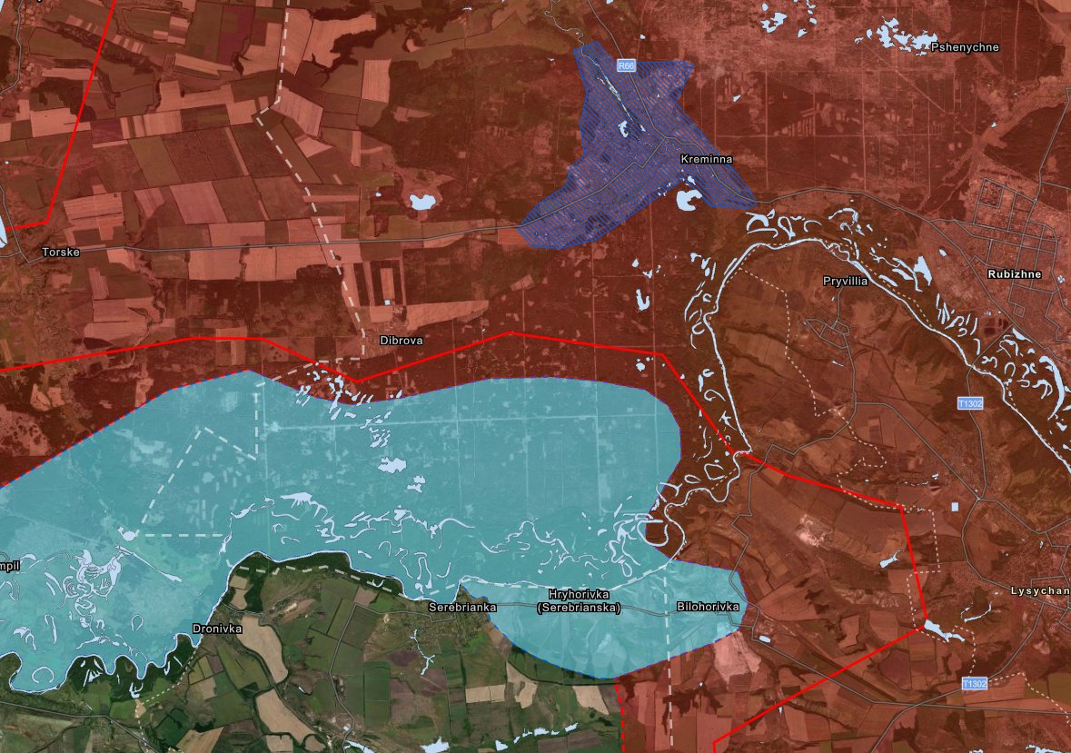 under Russian control. Russian milbloggers reported that Russian forces withdrew from the towns. Union of Donbas Volunteers quoted a battalion commander who reported his unit withdrew from Drobysheve to avoid encirclement by Ukrainian forces.