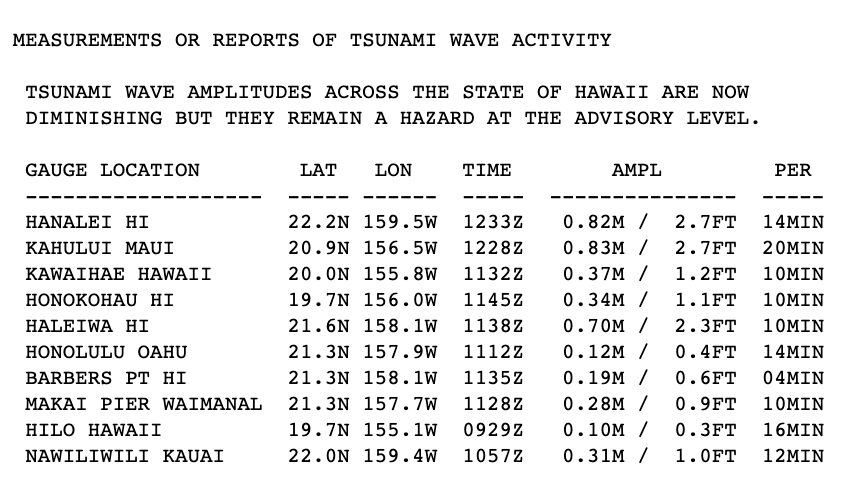 • Weather service says people should "move off the beach and out of harbors and marinas"