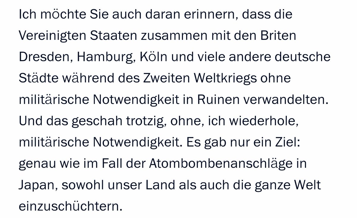 Deutschland als Opfer, auch eine beliebte Erzählung der Rechten, die Putin hier reproduziert.