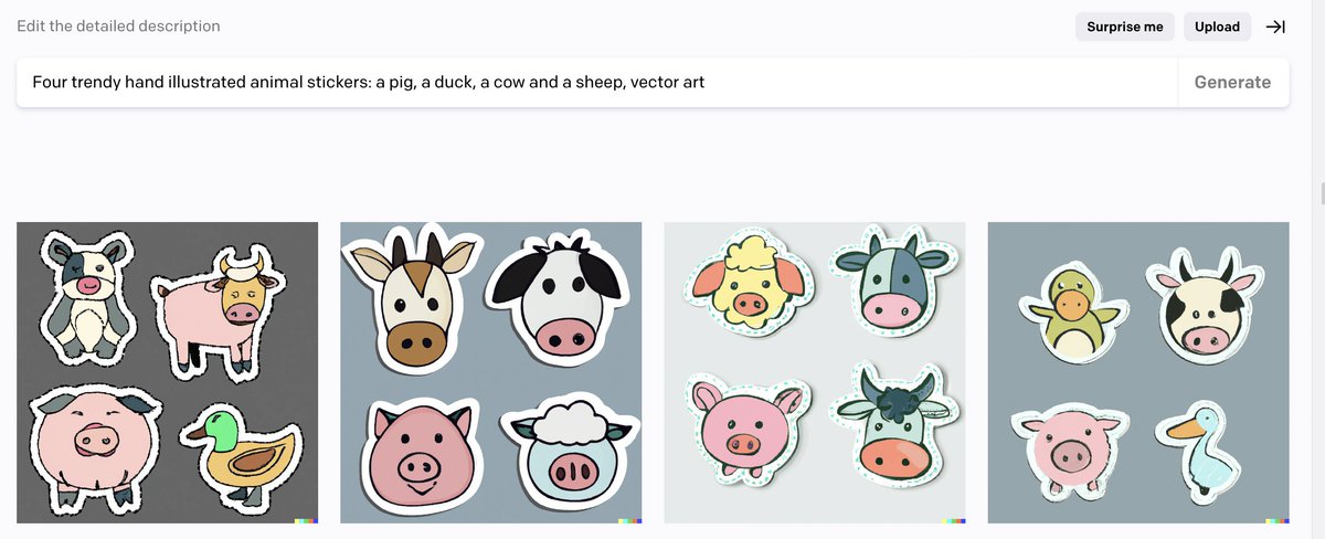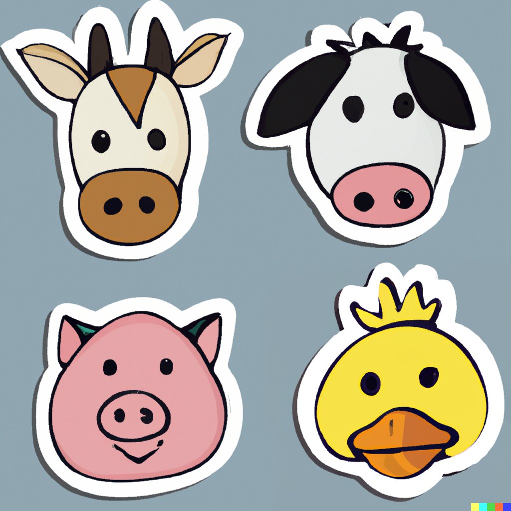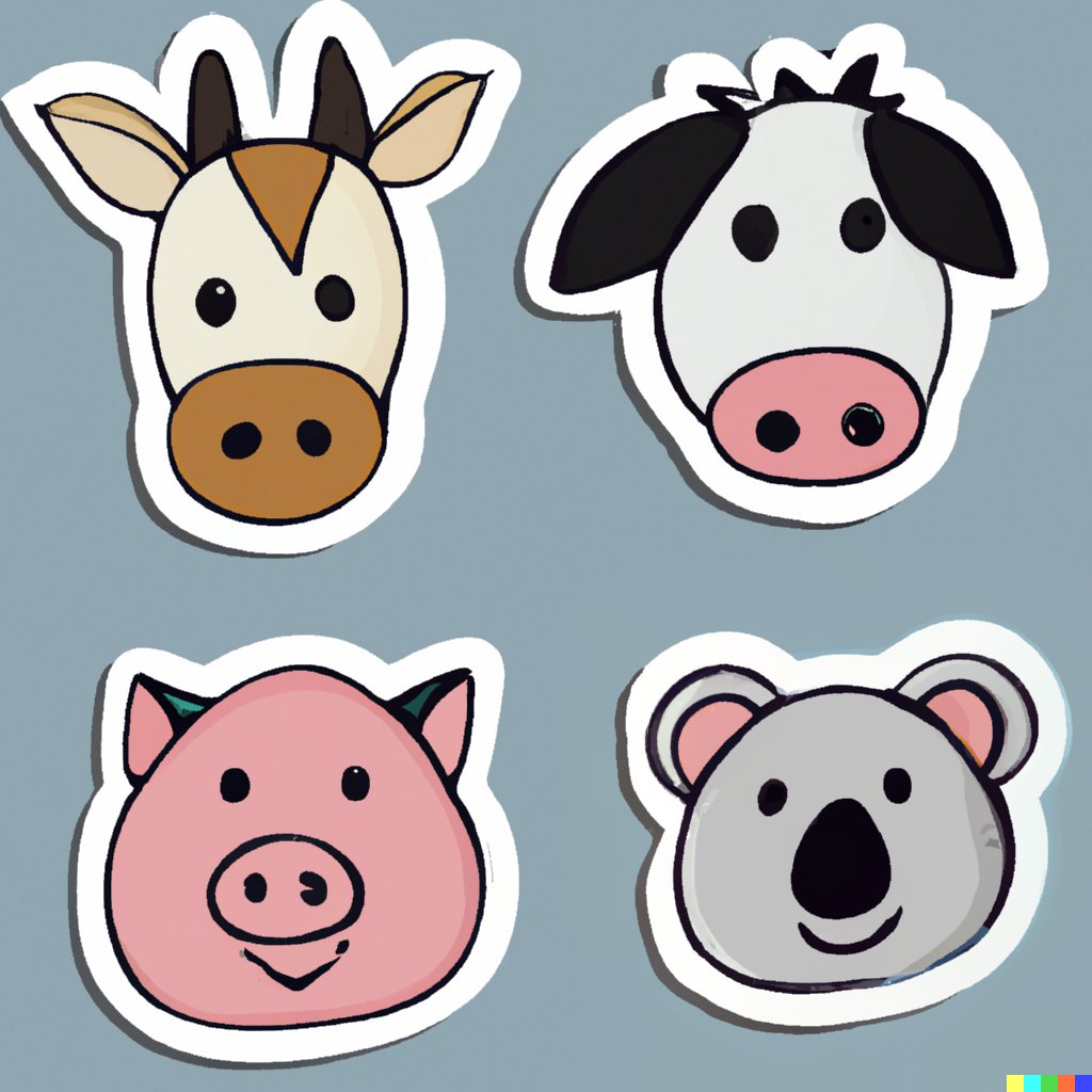 DALL-E creates four complimentary stickers despite being given minimal stylistic guidance.
