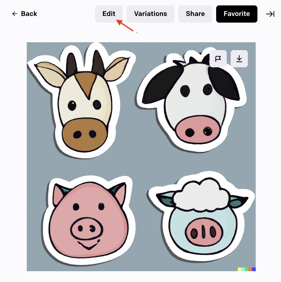 If you create a fresh batch of stickers, they won't match the current batch well. Instead click "edit", erase the sheep, then create a new animal.