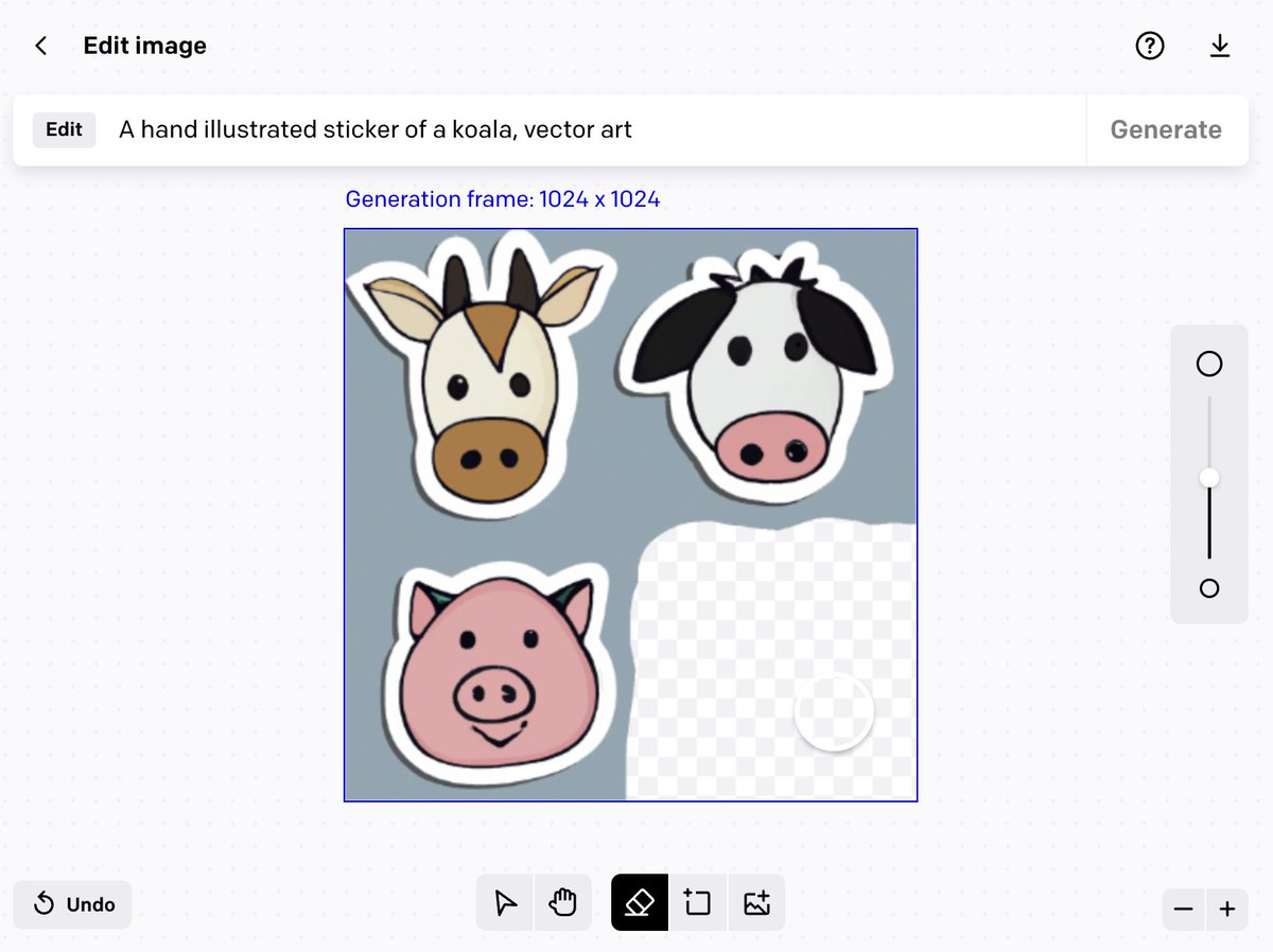 If you like an image, but wish a specific portion was a bit different (here our koala's left ear), you can delete it and have DALL-E generate 3 new copies to choose from.