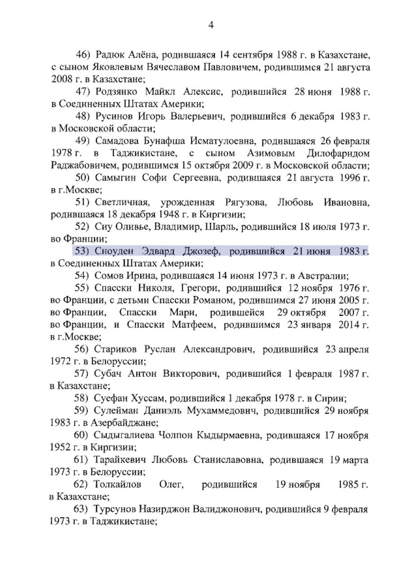 @Snowden Bear in mind, Snowden did apply for Russian citizenship two years ago to avoid the risk of being separated from his Russian-born son during the pandemic. But the timing of Putin's decree is, of course, inauspicious