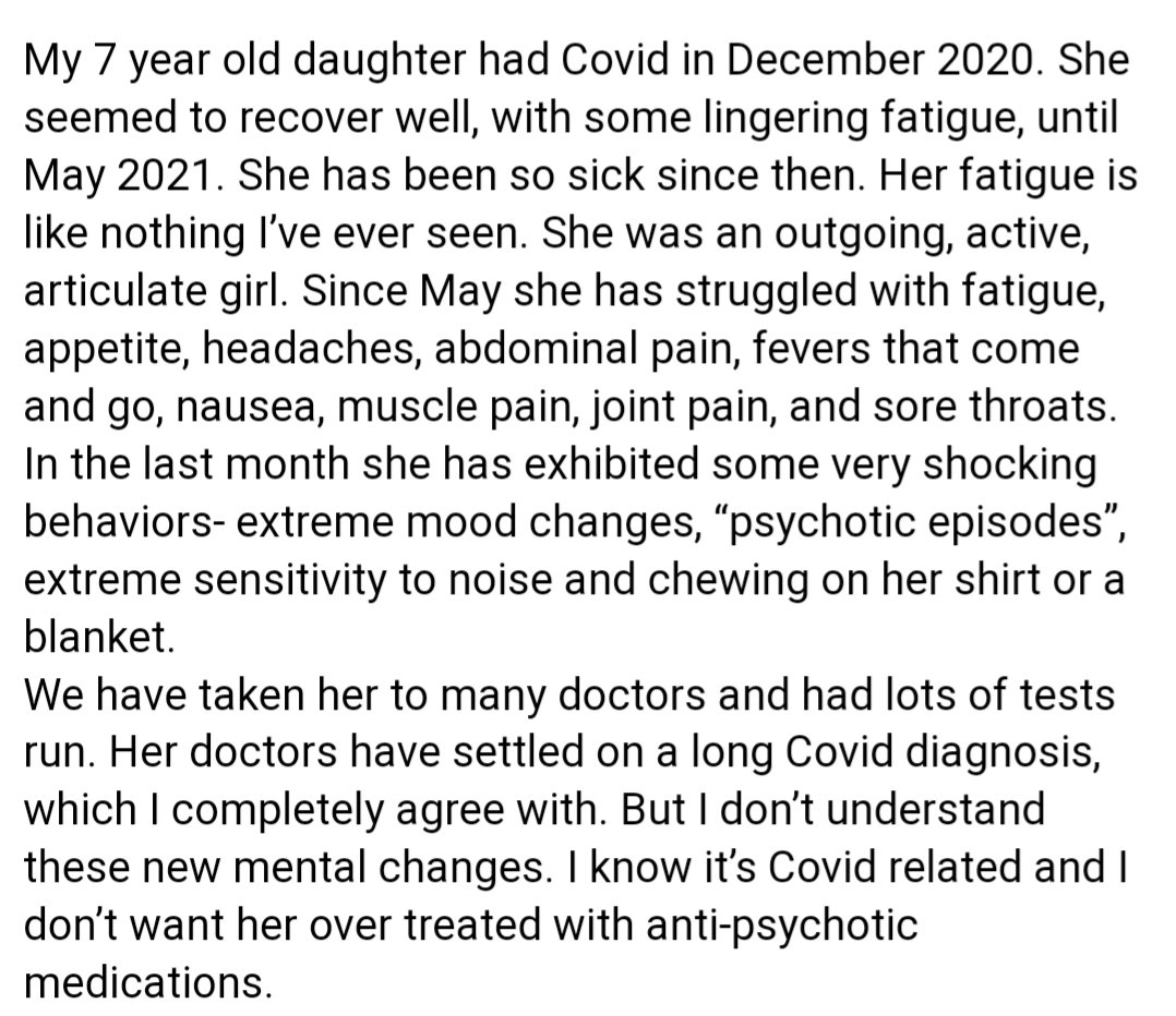 Cambios de humor...no es fatiga pandémica, es provocado por el covid, ejemplo, niña de 7 años👇