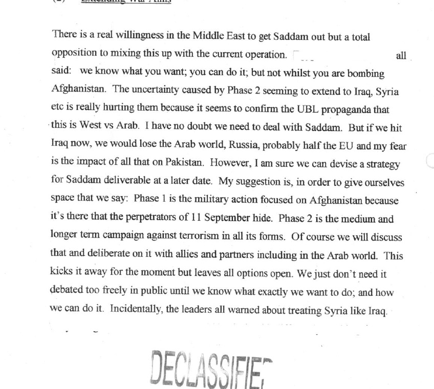 1) In the immediate aftermath of the 9/11 event, Bush and Blair conspired with each other in order to initiate a series of 'regime change' wars . eprints.whiterose.ac.uk/112107/