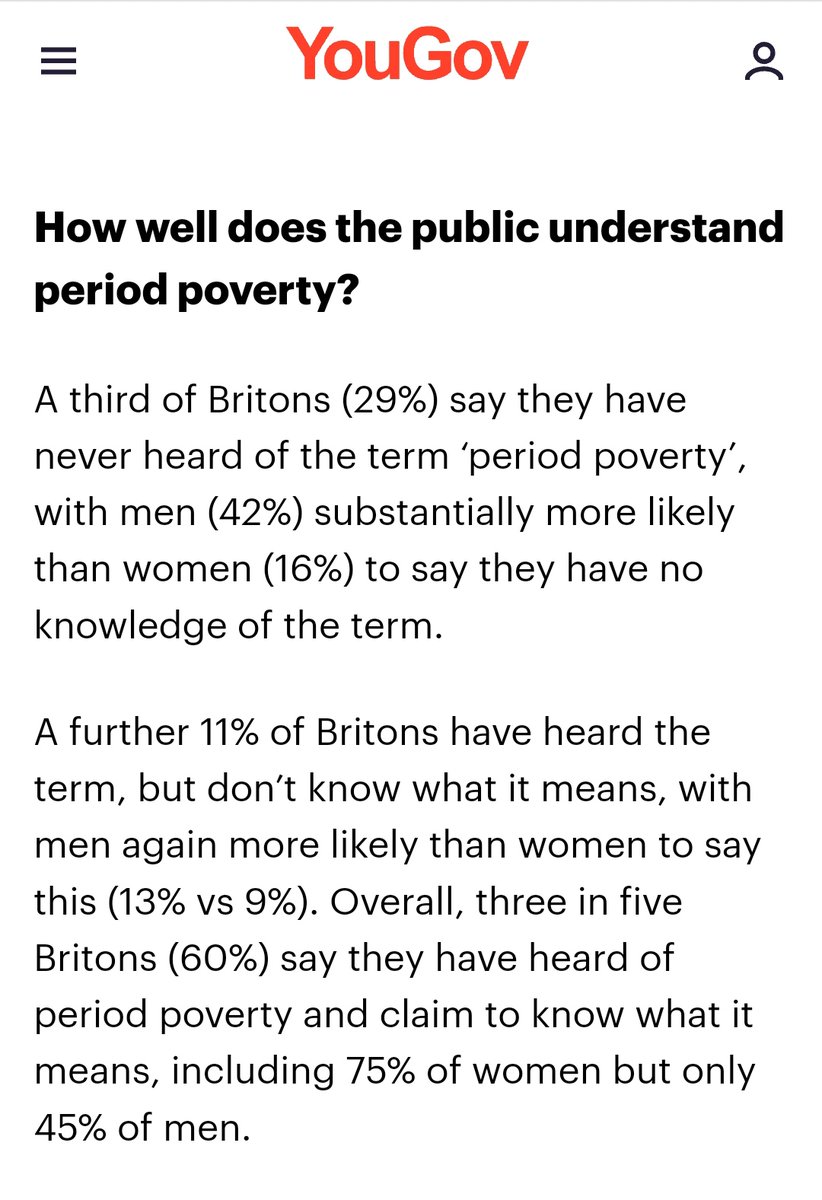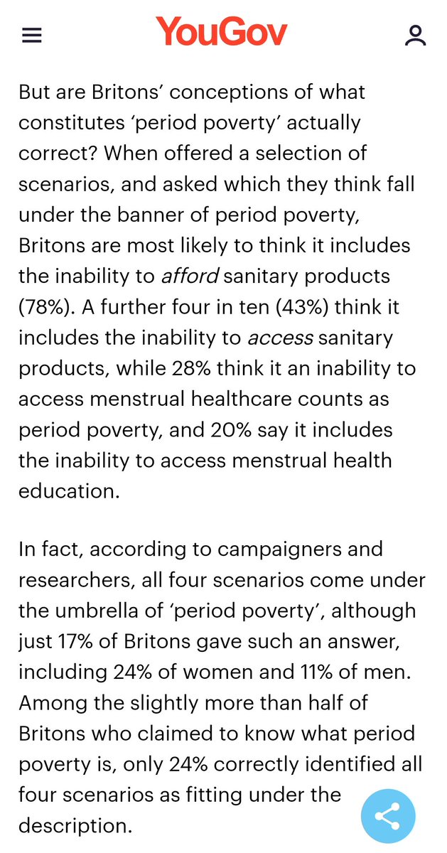 You would get a different answer in a set of Qs about poverty "which things can't you afford/access?" (Rent, energy bills, childcare holiday, transport, dentist etc ) or issues about period problems (pain, endometriosis, lack of toilet breaks)