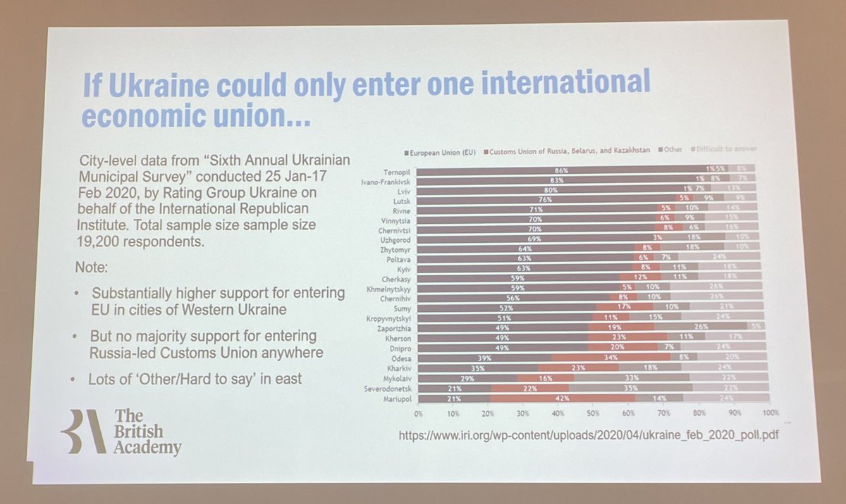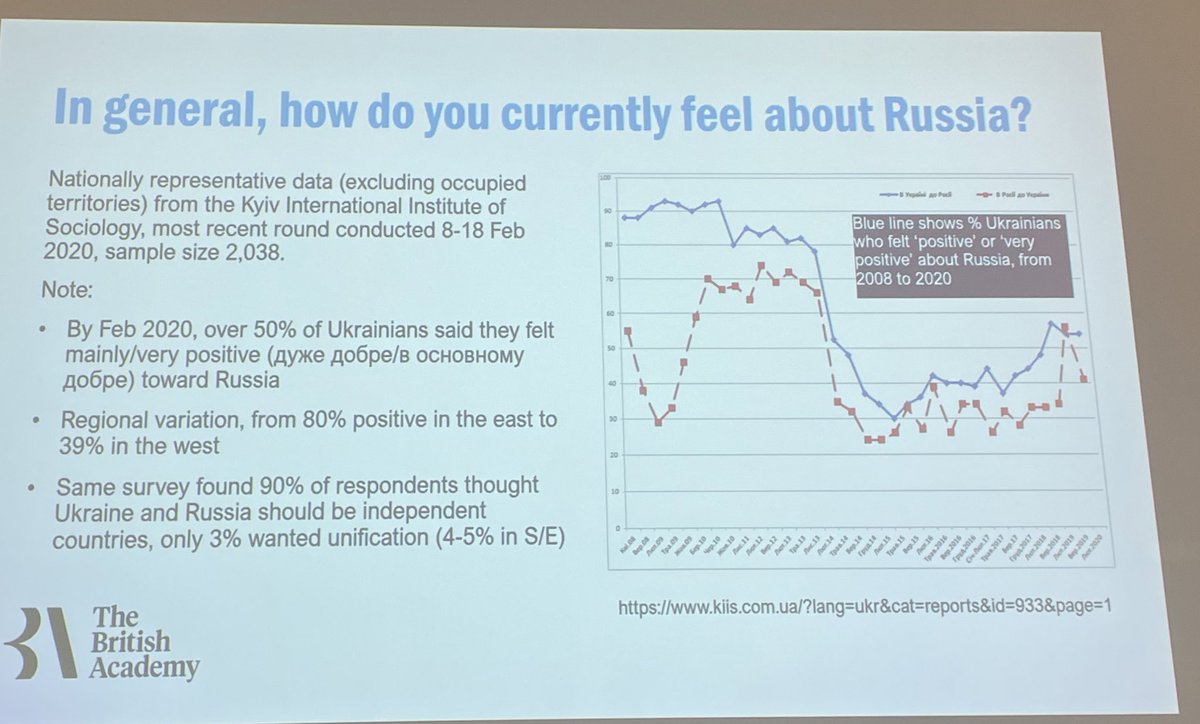 At @BritishAcademy_ conference on Russo-Ukraine War. Fascinating talk by @Joanna_Szostek on Ukrainian public opinion pre Feb 24. By 2020 A majority of Ukrainians were desirous of good and friendly relations with Russia, just wanting it to be based on 2 independent states.