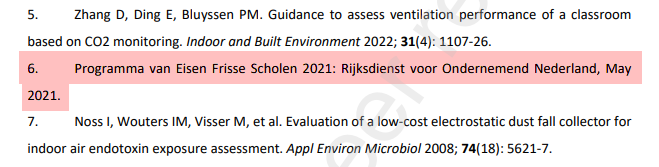 Dat zijn namelijk niet de “richtlijnen Frisse Scholen” zoals in het onderzoek aangenomen. Dat zijn richtlijnen die ver, ver onder de minimale eisen liggen.