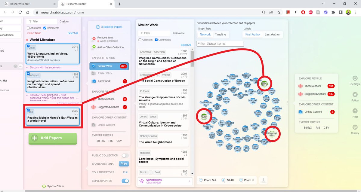 You can keep doing this and Research Rabbit will keep on finding newer and newer scholarly networks for you.