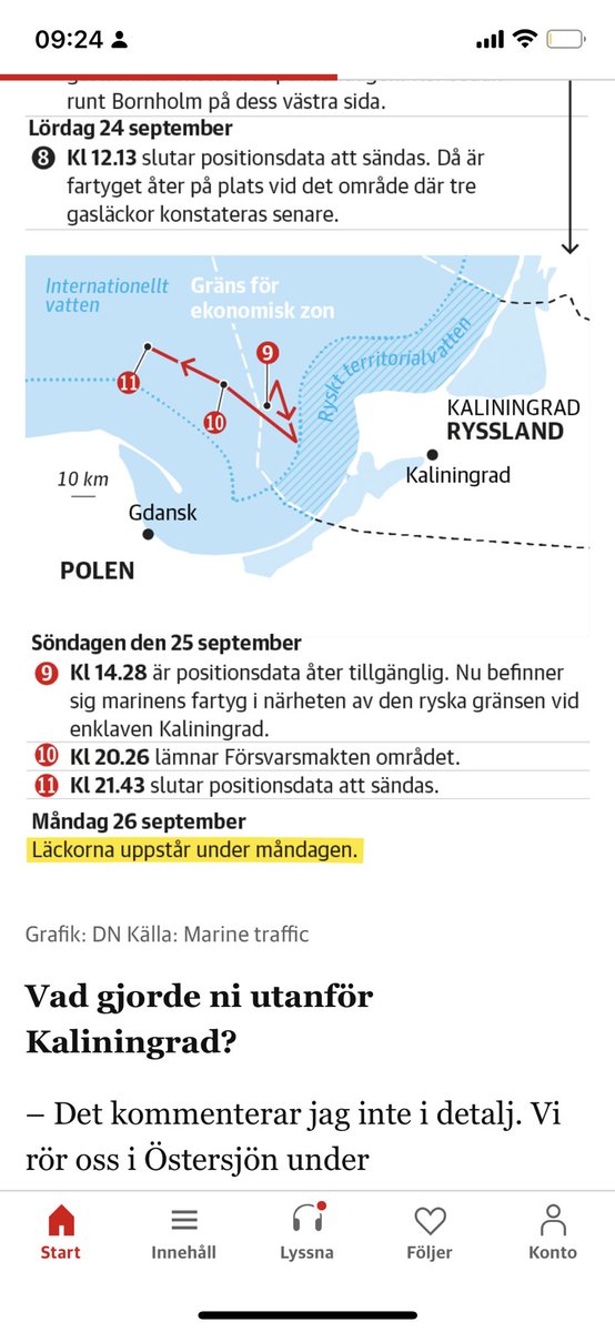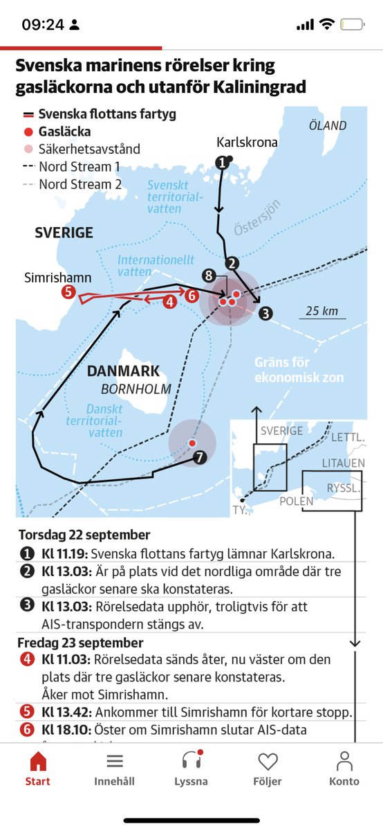 2 days before the attack, 🇸🇪 navy ships were at the site of the attack, perhaps surveying a submarine. This we knew. Today we learn that they then went all the way to Kaliningrad! (That’s where the 🇷🇺 Baltic fleet is stationed.) WILD guess: they followed the sub back home.+