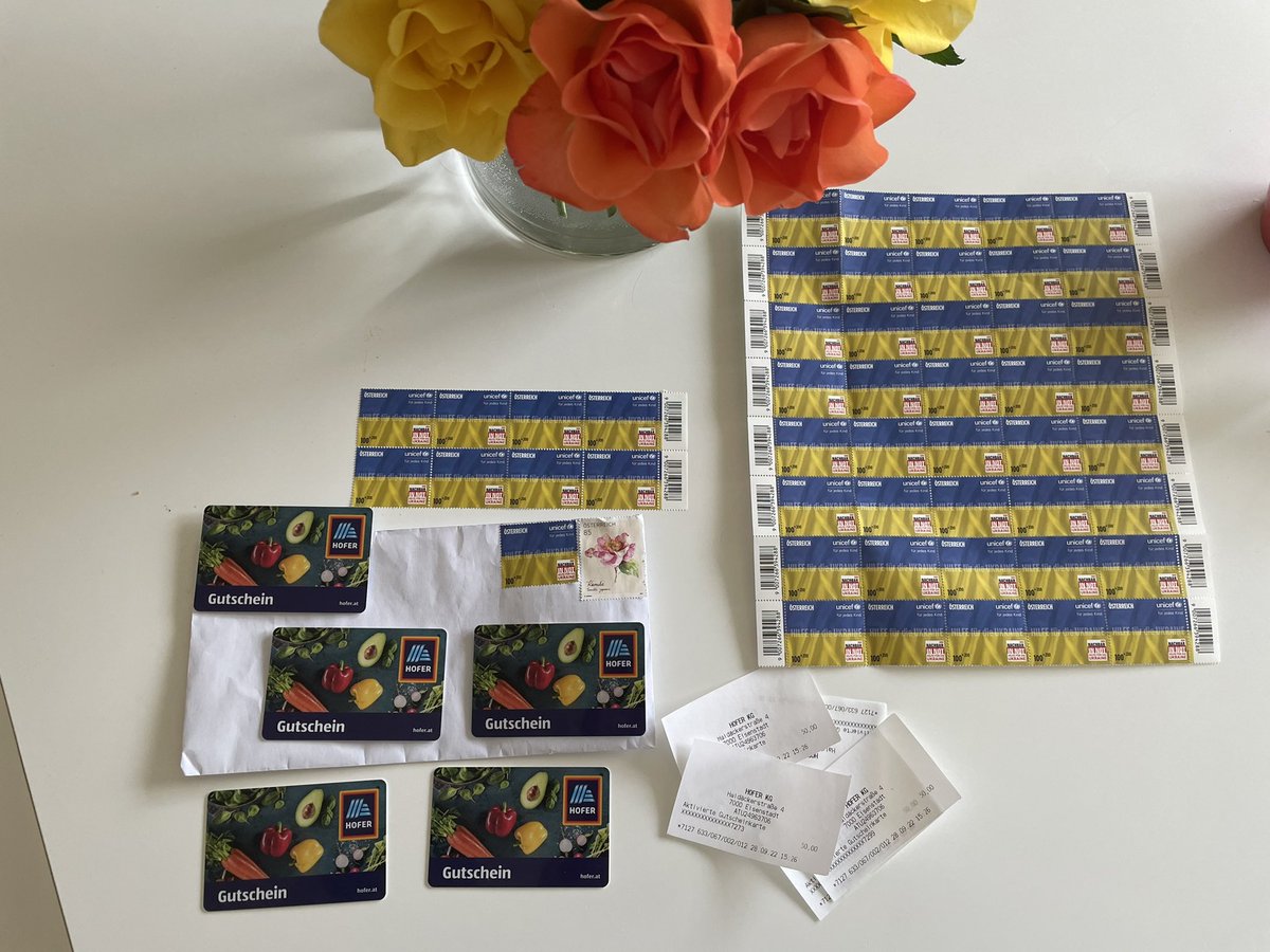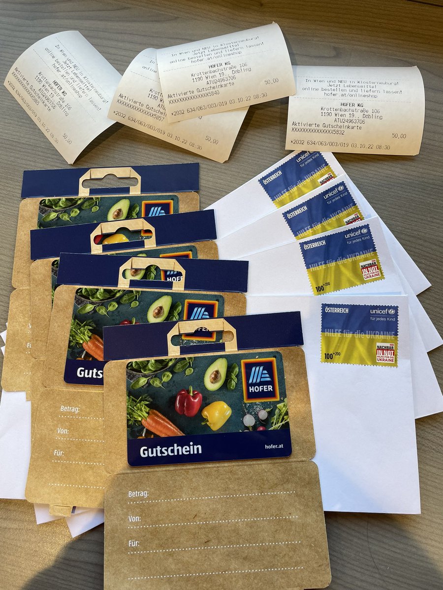 The four cards are going to a motel in a tiny rural town in Lower Austria where Ukrainian women are living side by side with Syrian men. They are “fed” and only get €40 per month pocket money. And now the bus/train ticket costs money. So I moved these 4 to the top of the pile.
