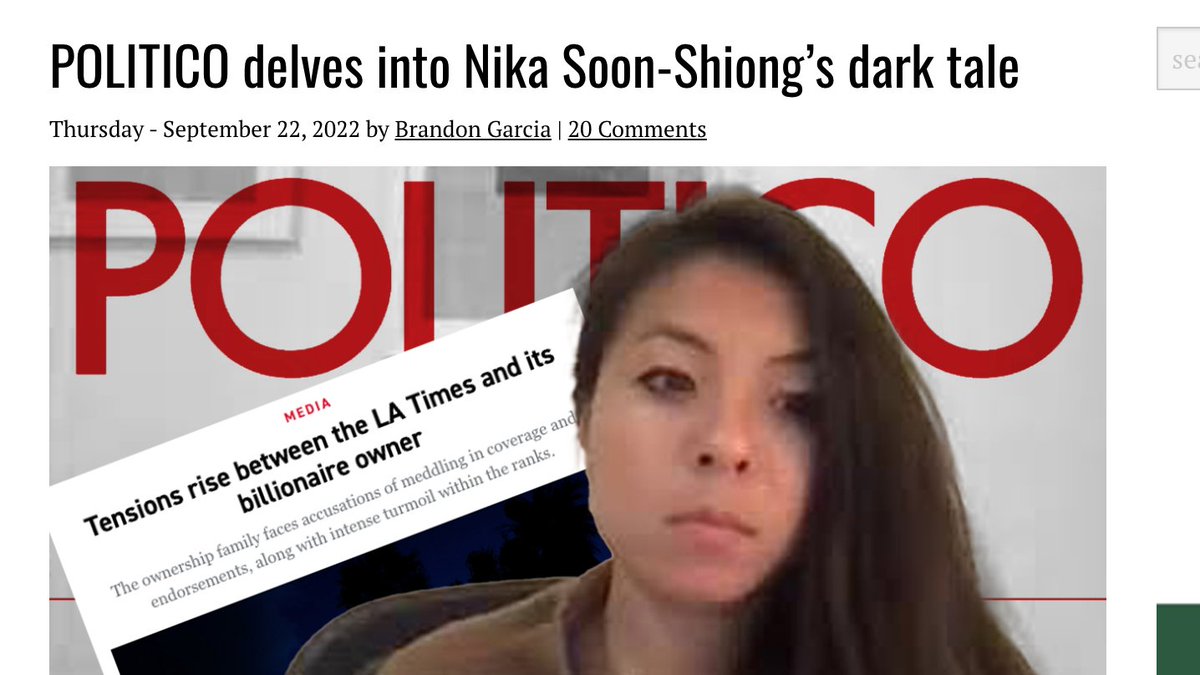 Just last week—Politico published one of the most obscene, unserious, fraught hit pieces I’ve ever seen. Forget what Nika's accomplished. Forget who she is. Here’s how they described Nika: “The 29-year-old daughter of Times owner Patrick Soon-Shiong.” It’s despicable.