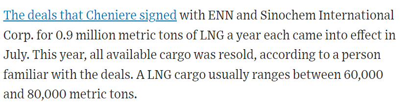 Chinese companies (the big energy SoEs and ENN) have struck a number of long-term purchase contracts for US LNG at favorable prices, and are now reselling US gas to Europe at a large profit (while importing Russian gas at a discount). Capitalism ...