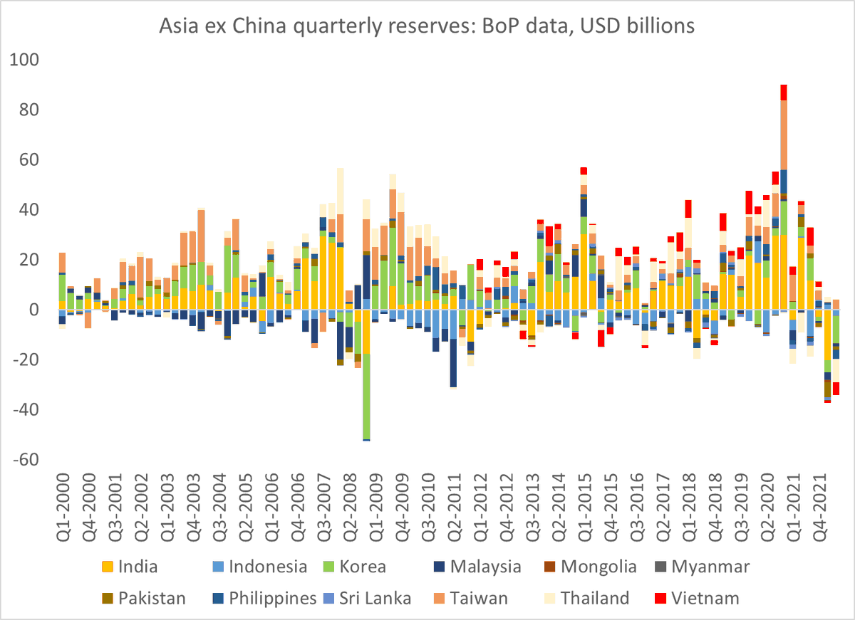Korea and Taiwan actually scaled back their intervention in July and August (the chart tho only covers data through q2)