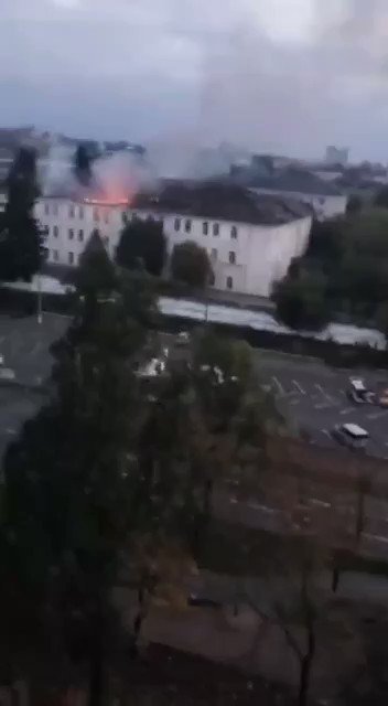 The aftermath of last night's Russian strikes with Shahed-136 loitering munitions in Bila Tserkva, that targeted the home-base of the 72nd Mechanized Brigade of the Armed Forces of Ukraine.