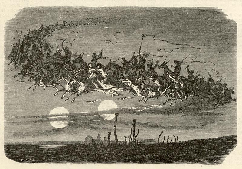 Estos personajes, de hecho, ya no vuelan junto a las nubes, sino que galopan más bajo, a veces incluso a ras de suelo, para que los mortales puedan verlos y horrorizarse ante su paso.