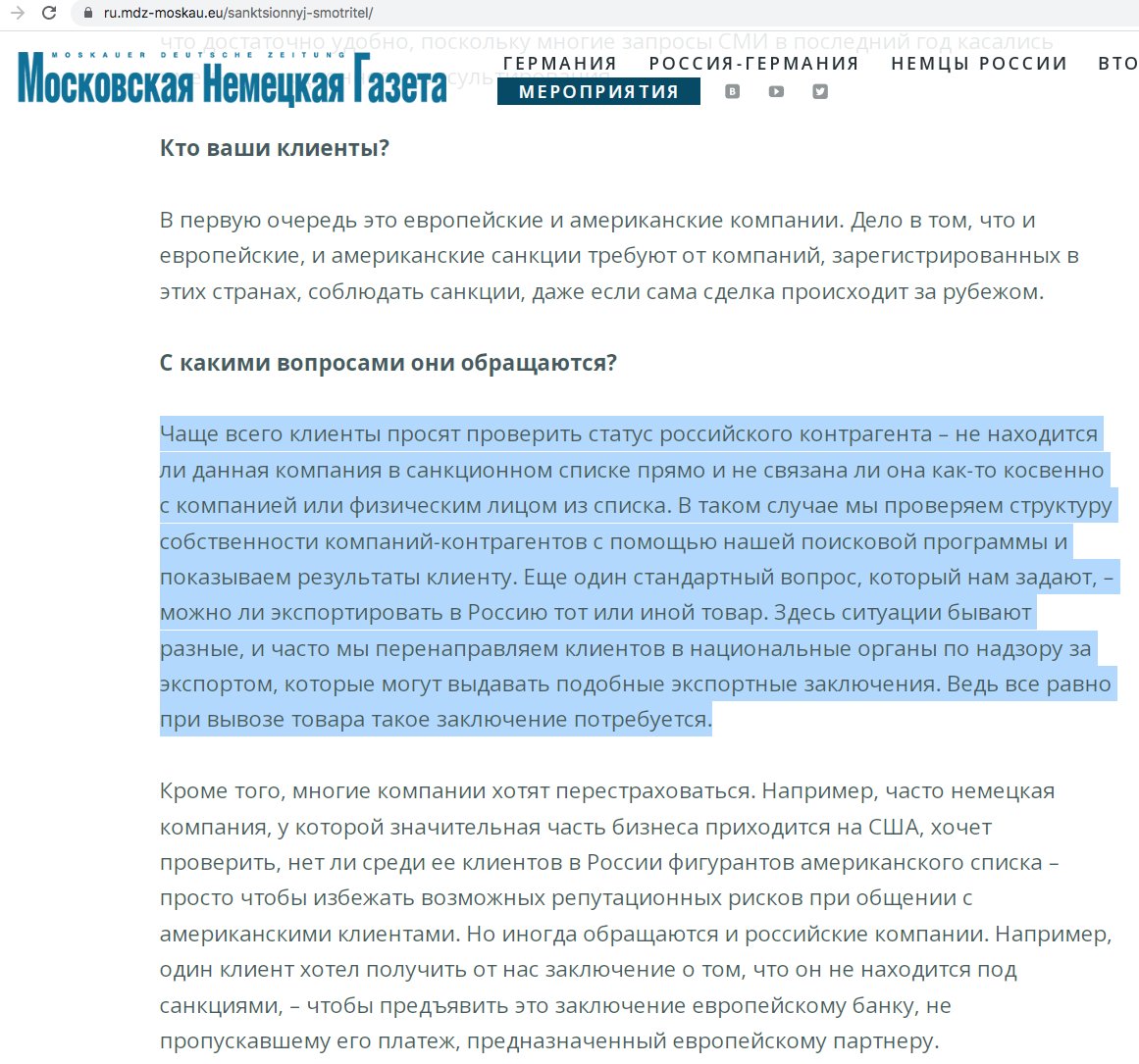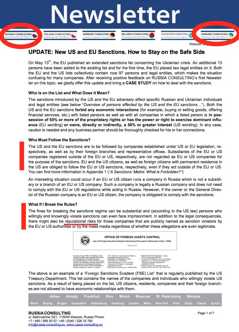 4) For understanding: it was early stage of the sanctions, 2014. Many Western companies did business in Russia, Ukraine, Kazakhstan etc. Many were small and medium family companies, with no sanctions expertise. I helped them to follow the law and to identify and cut bad ties 5/x