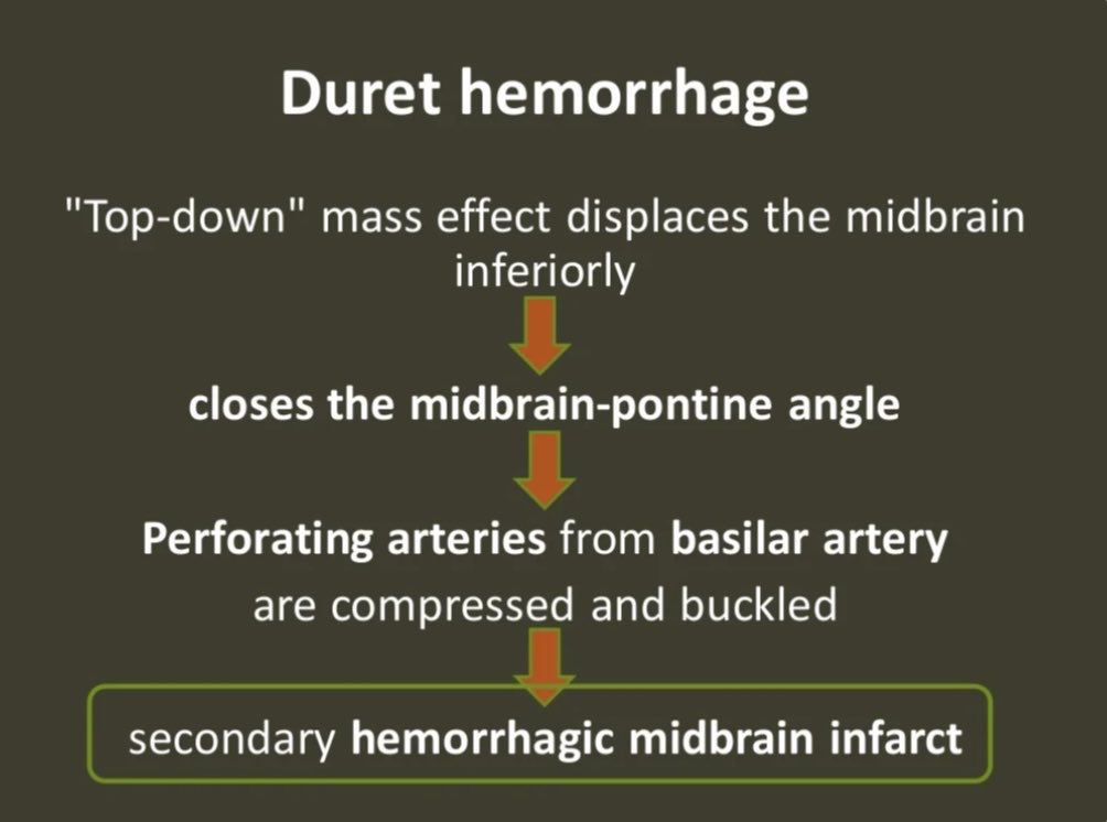 UNCAL HERNIATION with medial temporal lobe compressing the midbrain and see arrow where it was trapped beneath the tentorioum. What else do you see? #neurosurgery#neurology#neurotwitter