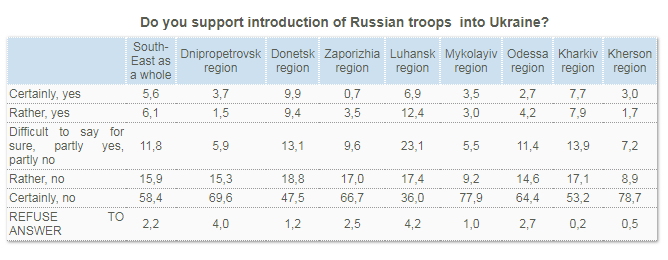 "Do you support the idea, that your region should secede from Ukraine and join Russia? "