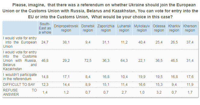 Luhansk region 20,6% rather no, 31,3% no vs. 17,1 rather yes, 13,2% yes
