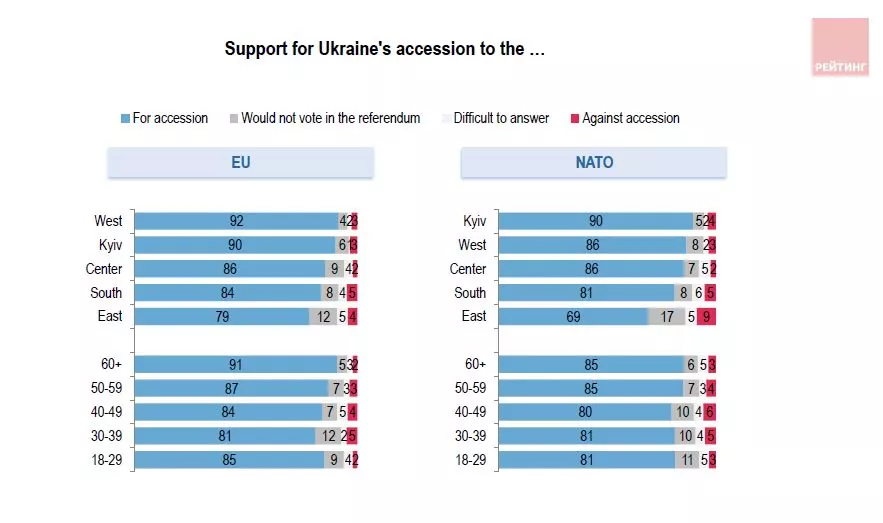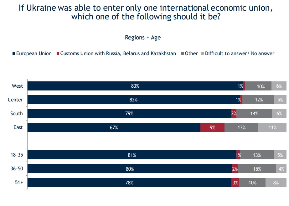 It is reasonable to say, that in 2022 these figures are much higher in favor of Ukrainian unity, cause we know that the support for EU membership was smaller back then.