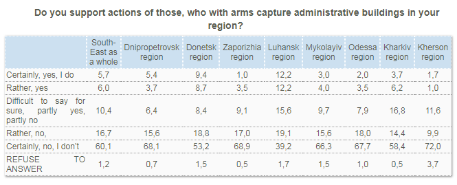 "Do you support actions of those, who with arms capture administrative buildings in your region?"