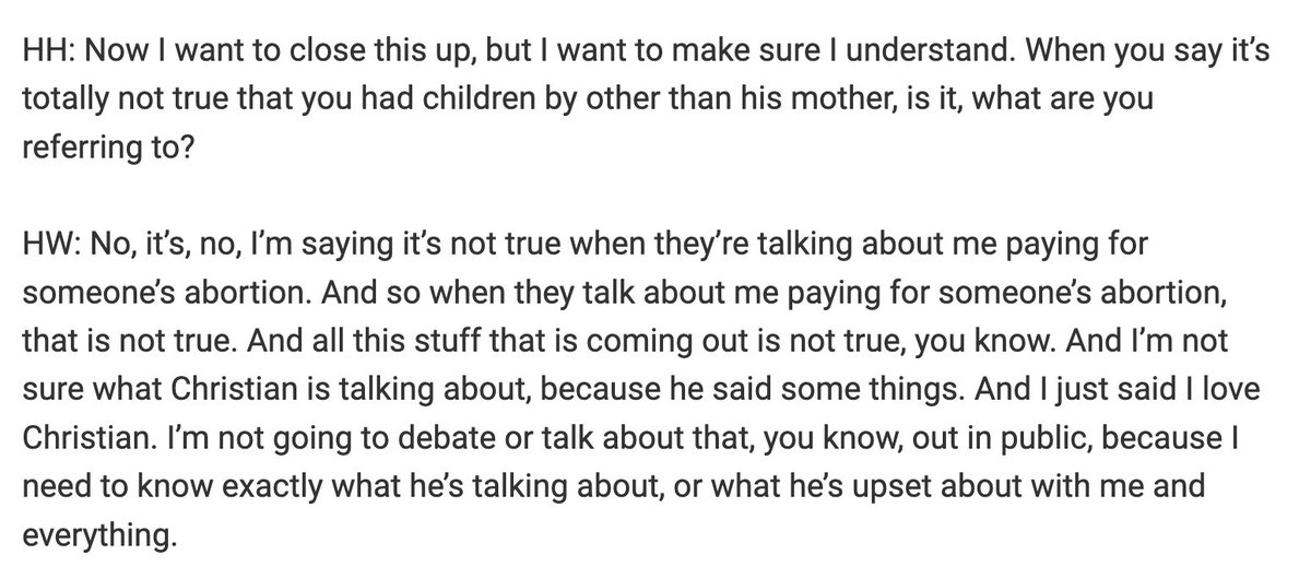 @thedailybeast@SollenbergerRC The Walker said that he hadn't spoken to his son Christian since the first Daily Beast report about his other kids because Christian "started believing that I had other kids" and that was "totally not true."