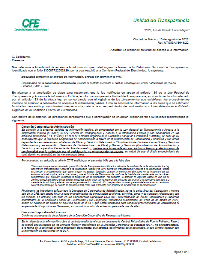 La CFE volvió a negar que tenga información sobre la Central Fotovoltaica de Puerto Peñasco que construye SESELEC en terrenos que donó Daniel Chávez de Vidanta .