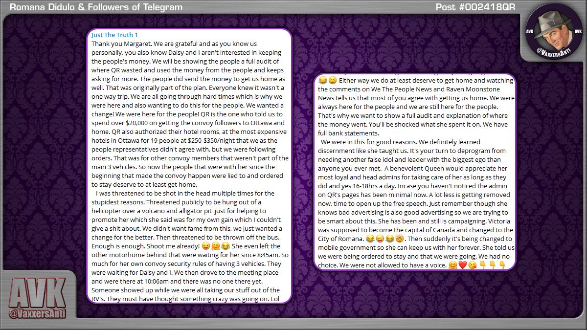 Romana claims she knew nothing of the event until 2 days before it happened, which is BS because the event was advertised every 20 minutes in almost all of her Telegram channels