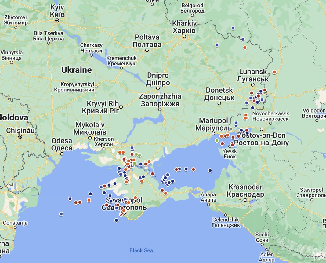 This updated map shows many of Russia's new fortifications and links each to satellite imagery. (1/5)