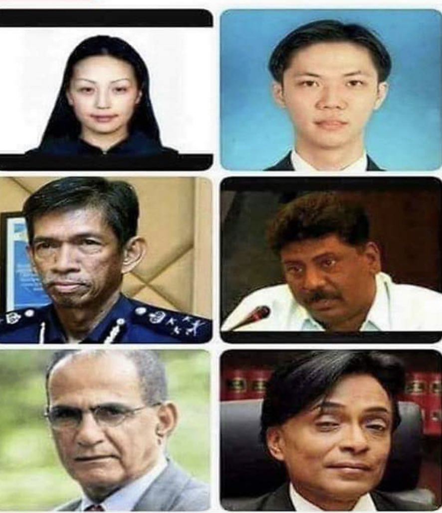 Top Left is Altantuya Shaariibuu. Murdered by two special police unit bodyguards assigned to Najib Razak on 18 October 2006. On 16 Dec 2019, the senior of the two, Azilah Hadri, alleged that he received instructions directly from Najib Razak to kill her.