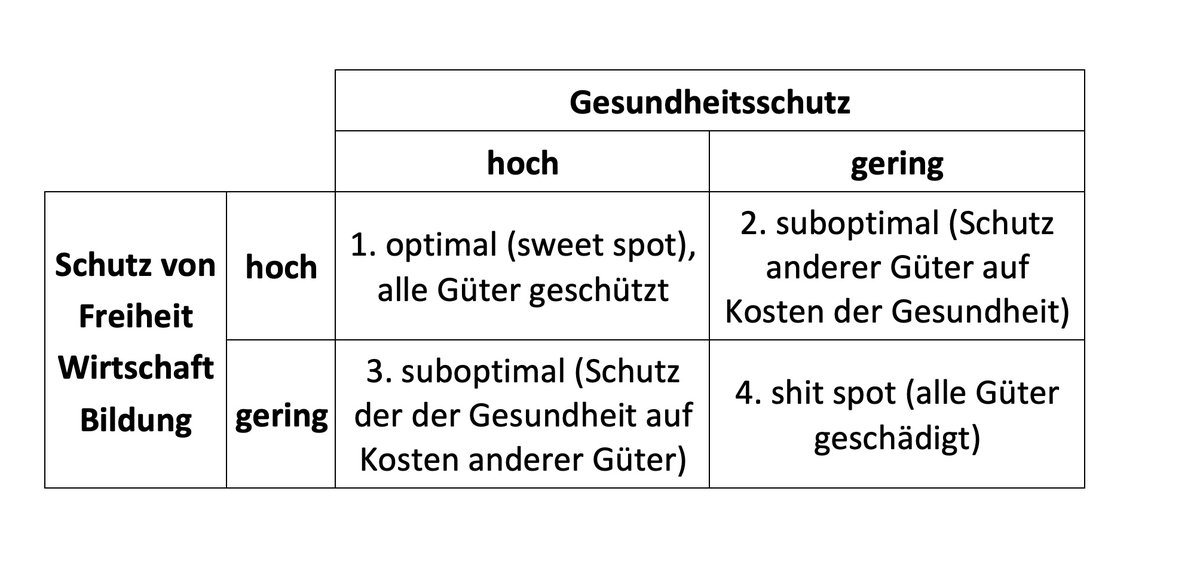 Ganz allgemein ist aus meiner Sicht eine Pandemiebekämpfung optimal, die den Zielkonflikt zwischen dem Gesundheitsschutz und anderen Gütern (persönliche Freiheiten, Ökonomie, Bildung) so löst, dass beide Seiten möglichst wenig beschädigt werden.