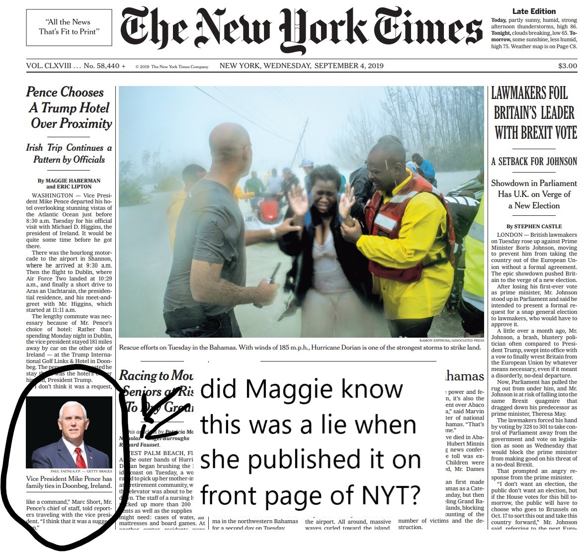 Now, three years later, @maggieNYT is contradicting her real-time reporting in @nytimes in her book, asserting that Trump did order Pence to spend money at his hotel.