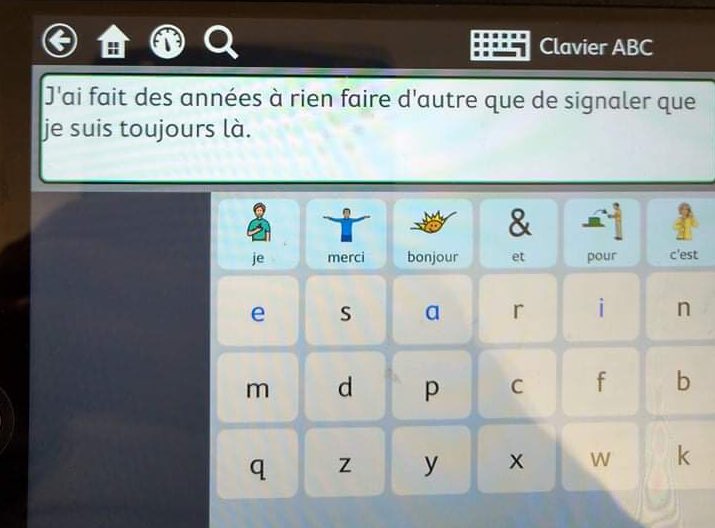 « Salut Antimythe , ma résidente locked-in a commencé à écrire un article pour raconter ce qui lui est arrivé... Quand ce sera fini, je te le ferai lire. Elle épelle les mots, en entendant le défilement des lettres qu'elle arrête d'un minuscule mouvement du (...)