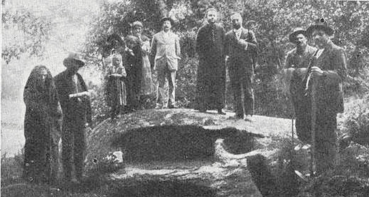Esta era a foto. Un grupo ben xerarquizado. Un cura novo e outro señor no centro. Sherpas á dereita, aldeáns atrás. E a moura do penedo e un señor que pasaba por alí á esquerda.