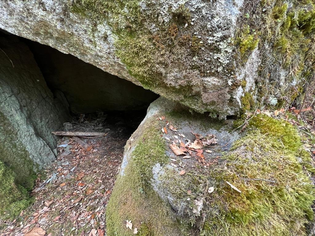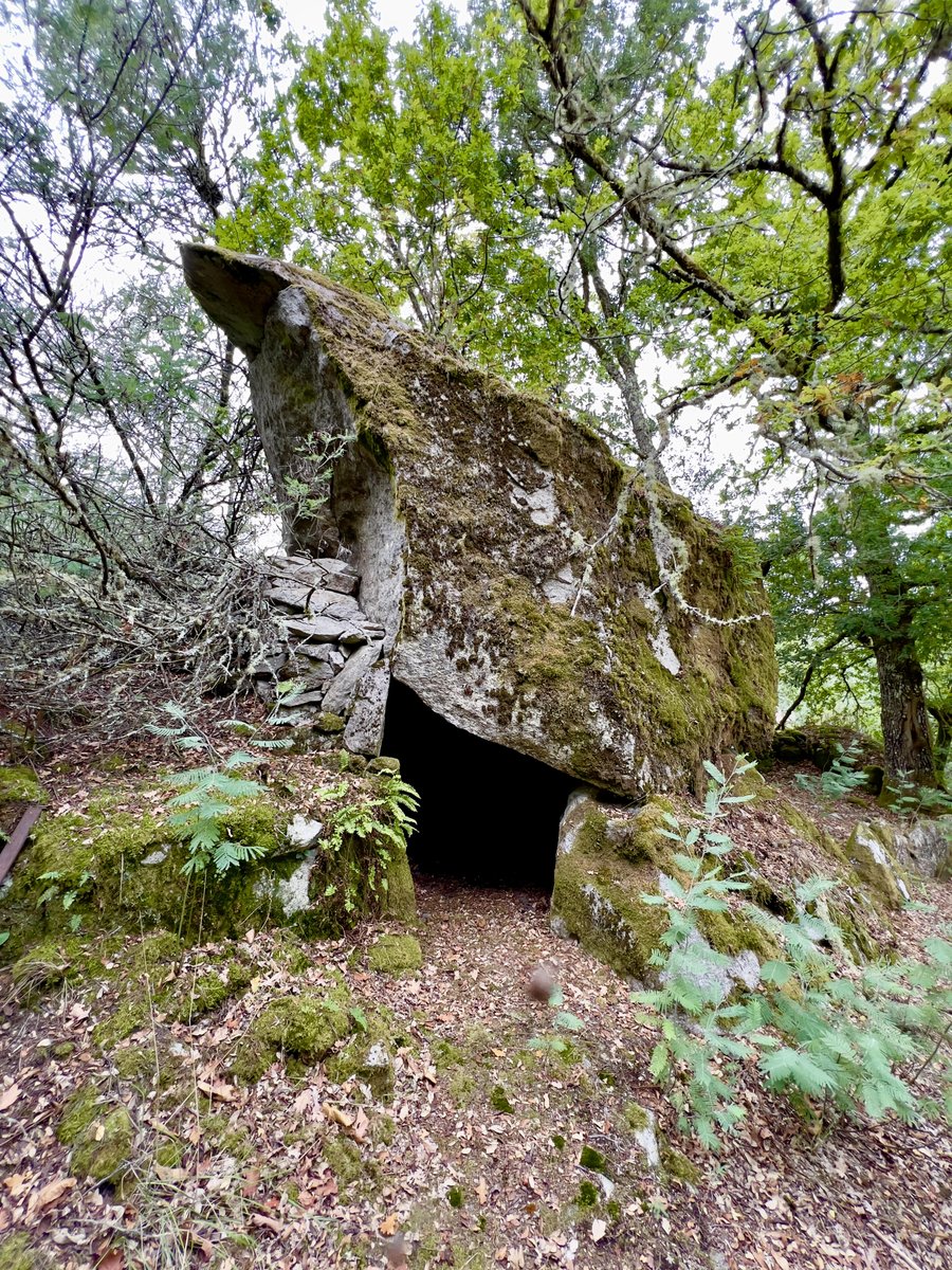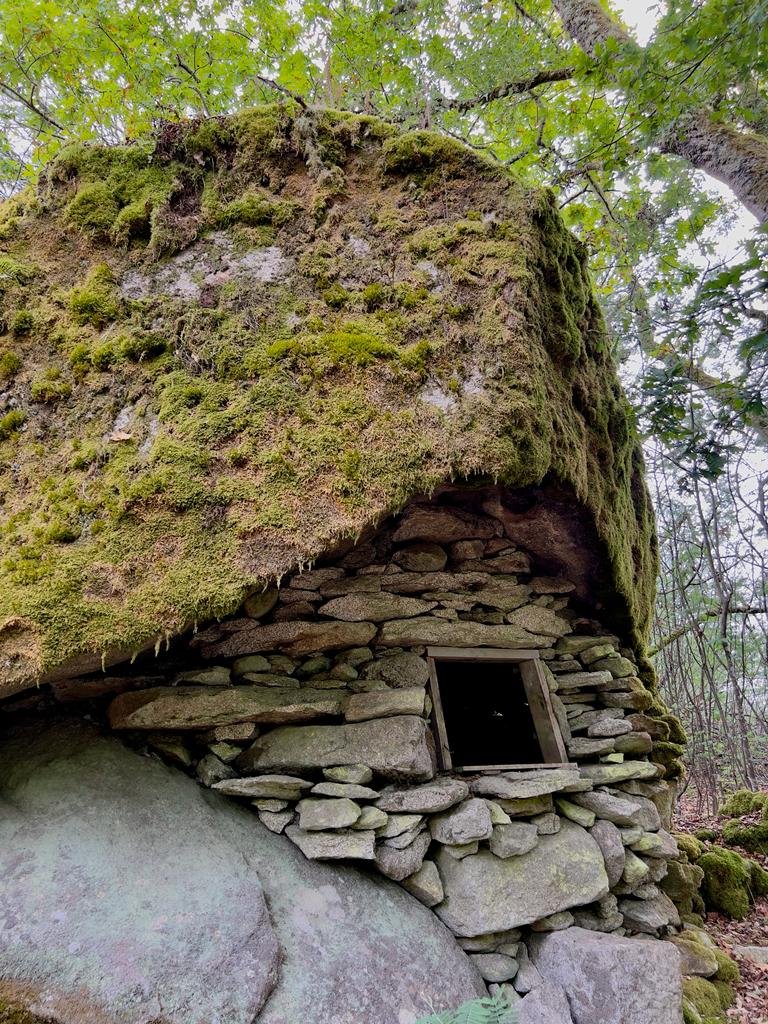 As muradas do abrigo non parecen moi antigas, pero son parte da antiquísima tradición ourensá de mudar os bolos graníticos en arquitectura. A pedra convértese tamén en partes da historia. Nesa coviña con follas cabo da entrada dicíase que a Gafa puña as cuncas de caldo.