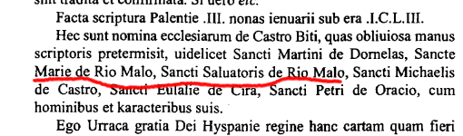 O tema está estendidísimo, a pouco que un rañe ao redor. Por exemplo, Santa María de Loimil (A Estrada). Aquí tedes un documento de 1115 no que a raíña Urraca lle doa dúas parroquias chamadas Rio Malo á catedral de Santiago. Pois ben: sabemos que son Santa María de Loimil.