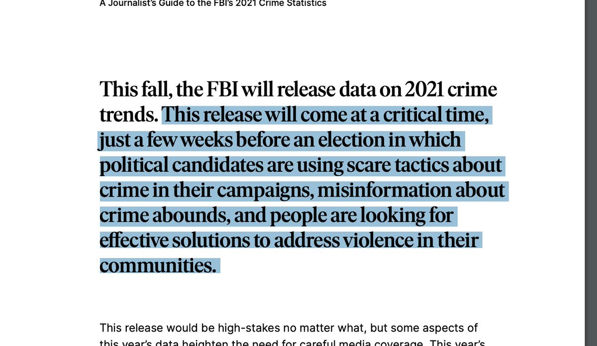 Dear journalists. As you know, FBI just released its report on 2021 crime trends. Please don't make similar mistakes as in past years & amplify distortions of data for political ends. Good news: There's a guide written for you on best practices. Highlights:justjournalism.org/media/download…
