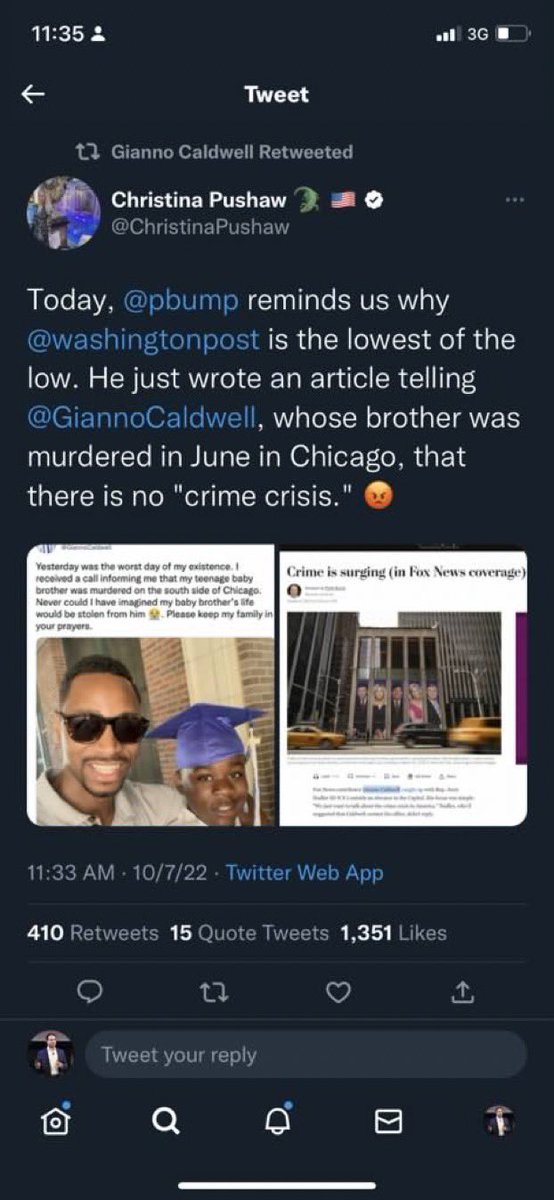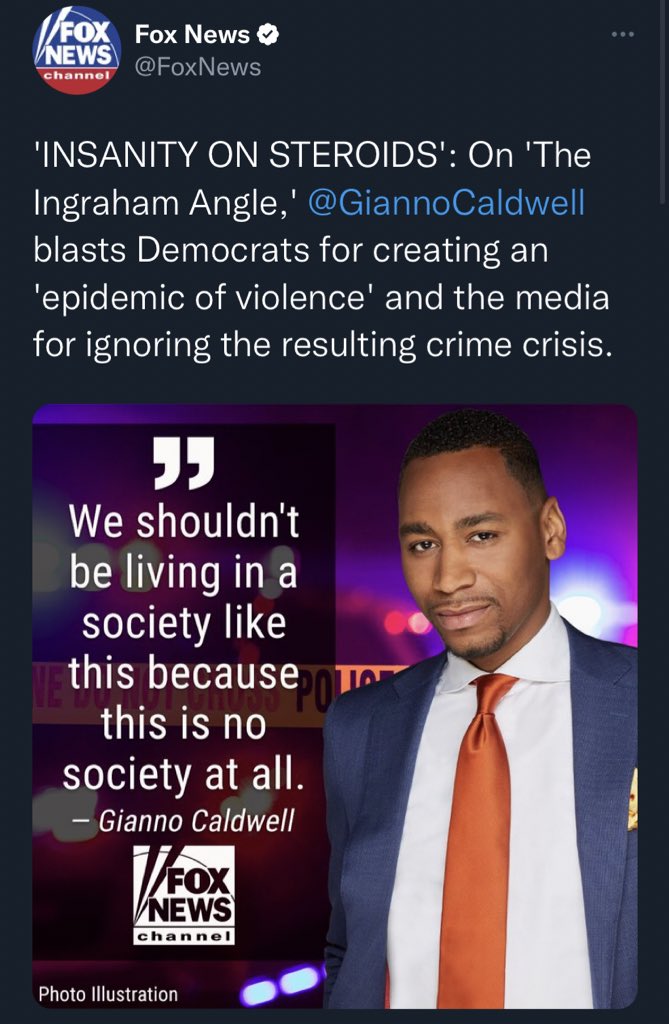 The reporter Gianno Caldwell is a rightwing propagandist. And he’s also a surviving family member of a brother who was shot. Can’t come close to imagining. Truly sorry. But he’s using that loss to misinform, drive anger, & push for more of the same policies that enabled the loss.