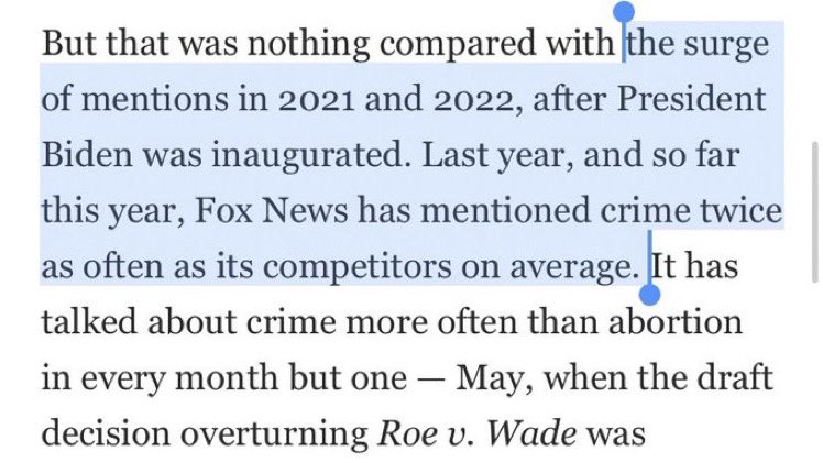 Look at this graph. The difference in mentions of “crime” as a pressing issue before and after Biden was elected as compared to other outlets—who also critically are covering crime at outsized rates, driven both by real relative increases, but also police & prosecutor influence.