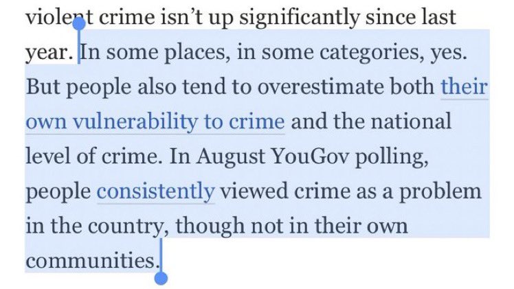I was impressed that the Washington Post identified the impact of outsized & overblown news coverage on crime—and only certain kinds of crime—on peoples outsized fear & *perceptions of their own vulnerability to crime, *even where they perceived their own communities to be safe.