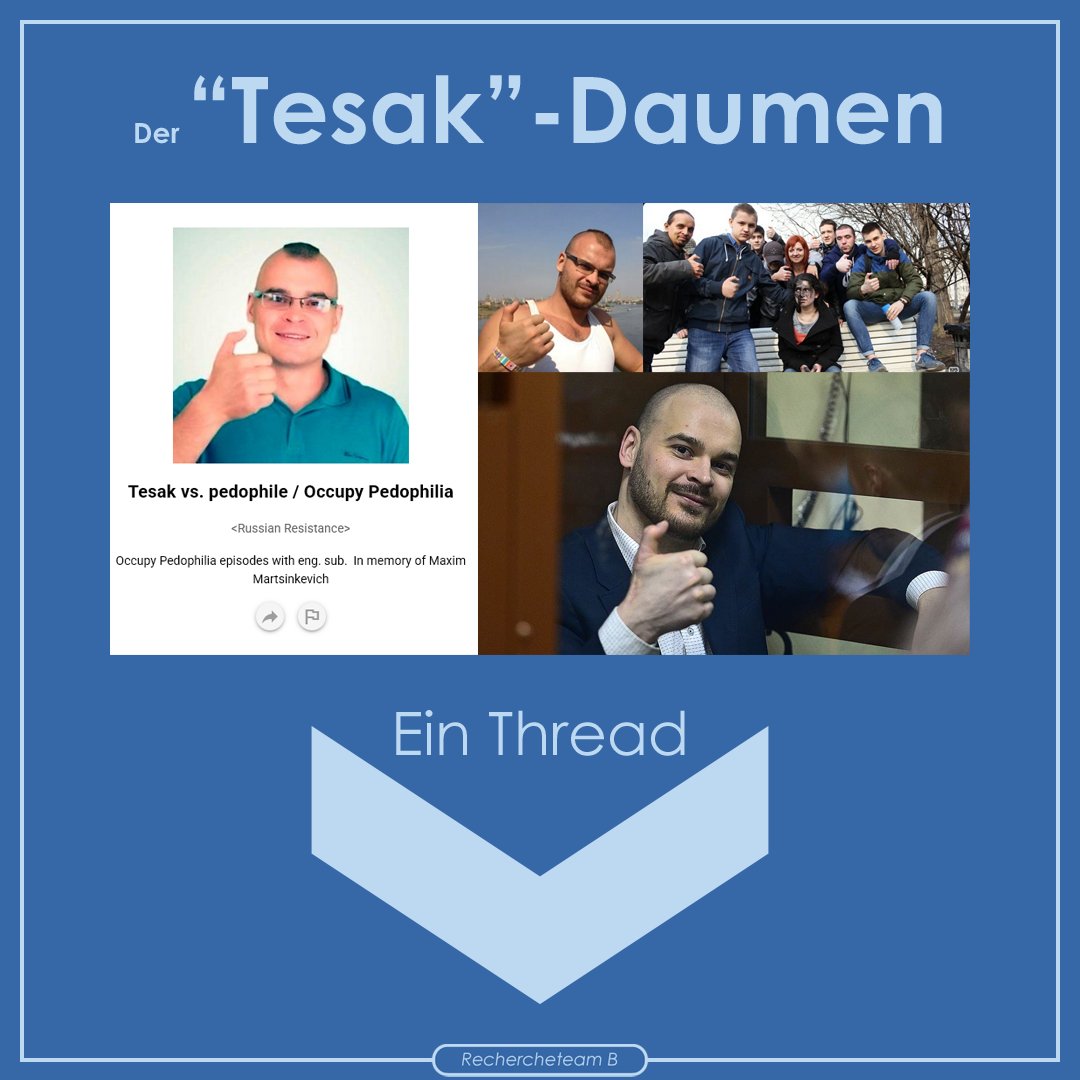 1// Kurzer Thread zur Bedeutung des sogenannten "#Tesak"-Daumens, einem Erkennungszeichen von „#OkkupayPedofilyay“, nach dem russischen Rassisten und Neonazi "Maxim Sergejewitsch Marzinkewitsch". Dieses Zeichen findet sich auch immer öfters auf Rechten Demos in Deutschland.