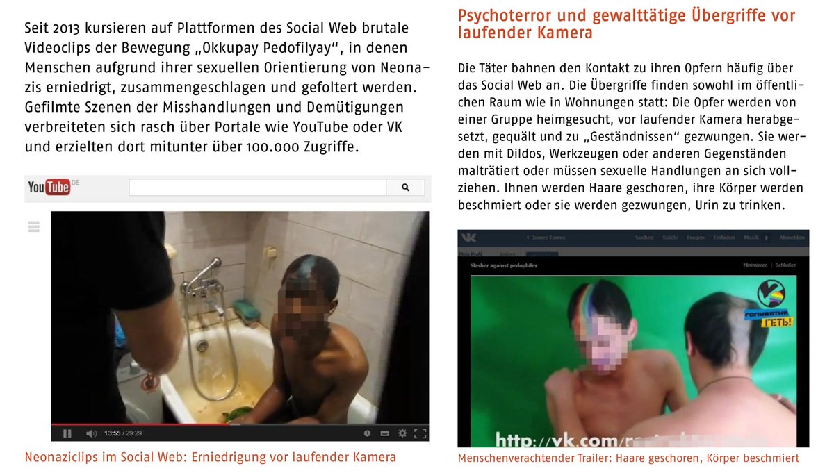 3// Ein kurzer Artikel von JugendschutzNET aus dem Jahr 2014: „#OkkupayPedofilyay“: Neonazis machen Jagd auf Homosexuelle. Brutale Videos mit Folter und Erniedrigungen werden häufig geteilt und hämisch kommentiert. Screenshot aus PDF: vielfalt-mediathek.de/wp-content/upl…