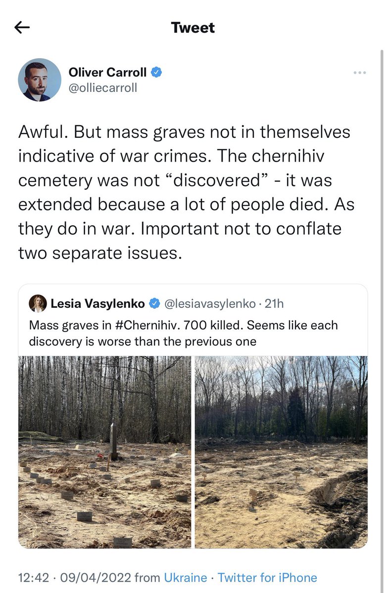 і саме найгірше - він чомусь дуже зосереджений на контролі мови навколо військових злочинів в україні, і не хоче називати, що русні тут наробили (він уже видалив деякі з цих твітів, але я зробила скріншоти)