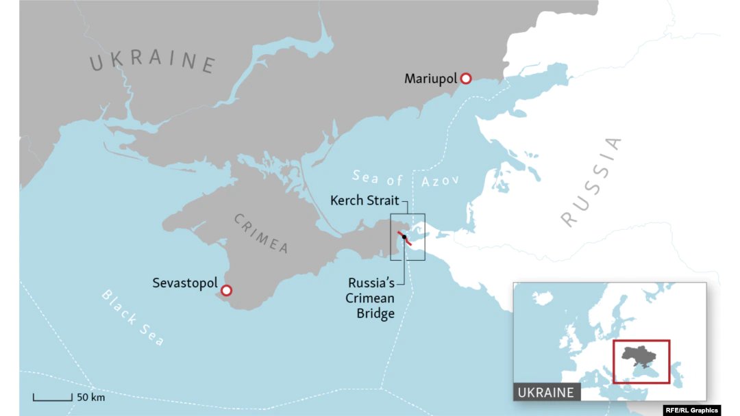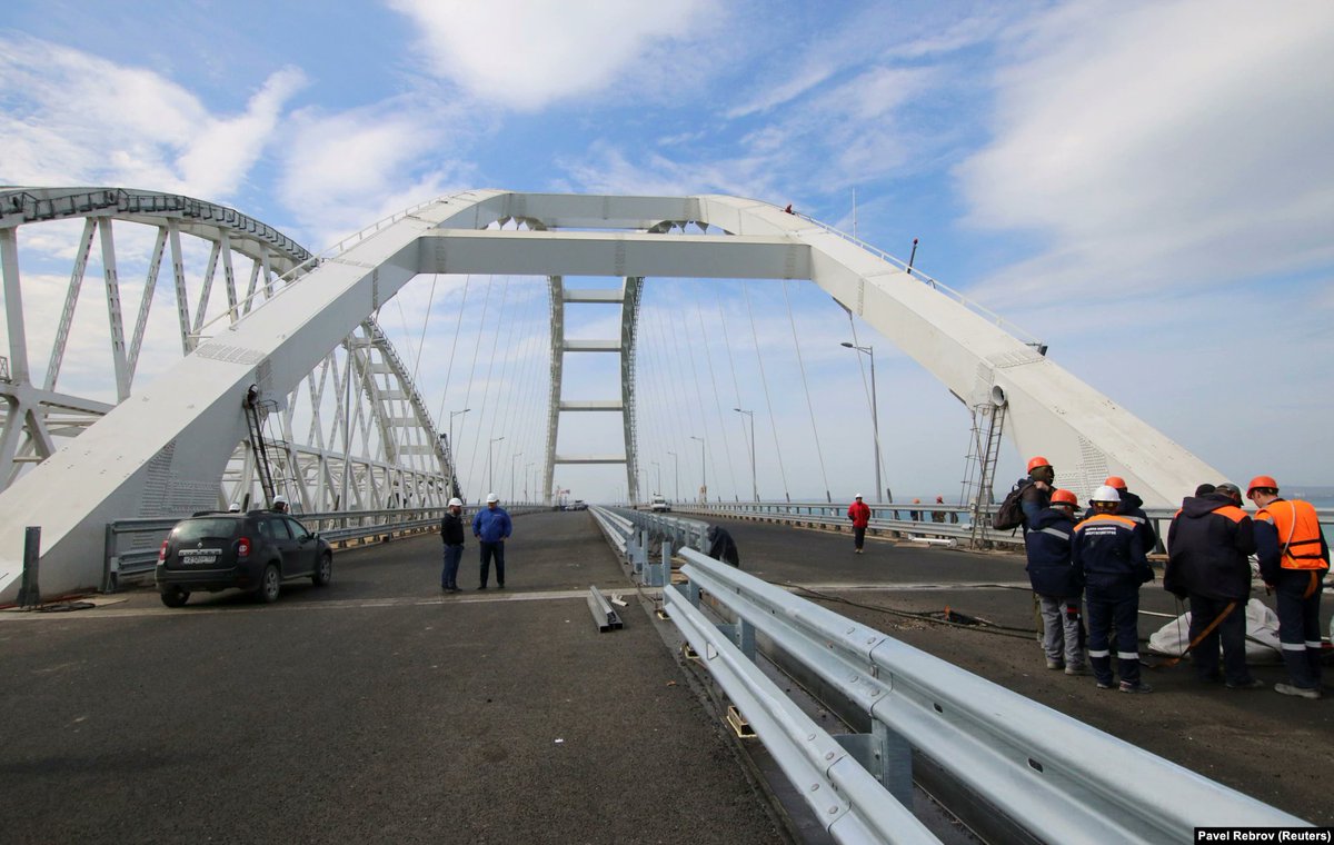 9/ The 227 m span of the arch is of huge importance to shipping. Under it is the only way in and out of the Sea of Azov – all shores of which are now controlled by Russia. If the shipping lane is blocked, all Russian maritime assets in the Sea of Azov are stuck there.
