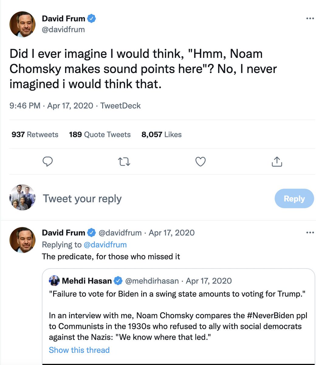 Note, too, how Chomsky is covered by major Latin American media (Globo). Candidates seek his support. In the US, he's ignored except when useful ("Vote Dem!").