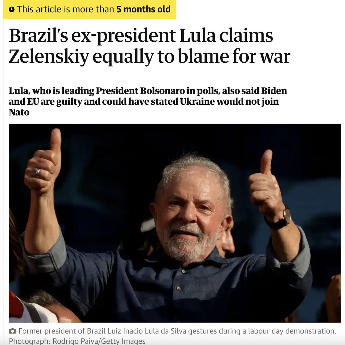 The mainstream US "left" is now claiming such great affinity for Lula. Yet look at what Lula - from the start - has been saying about the US role in the war in Ukraine.