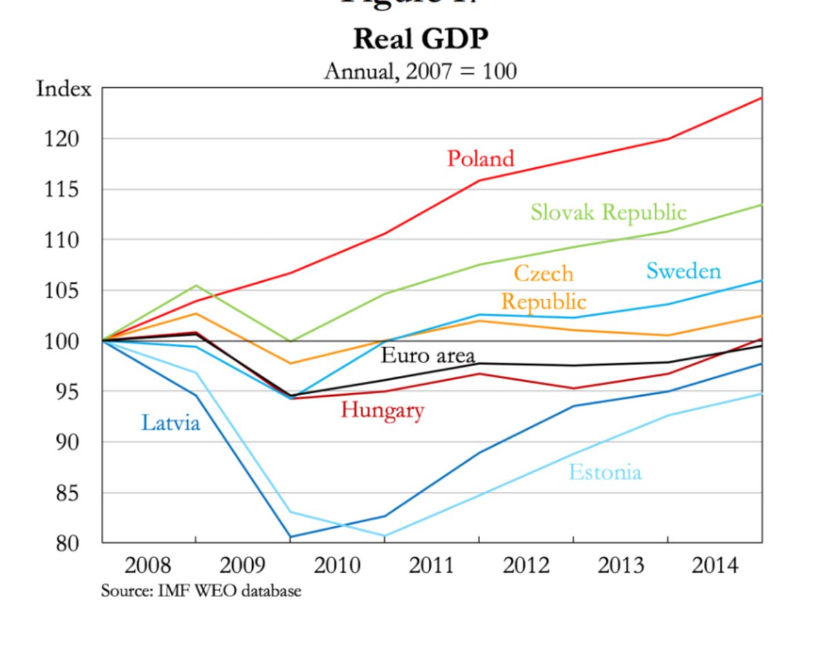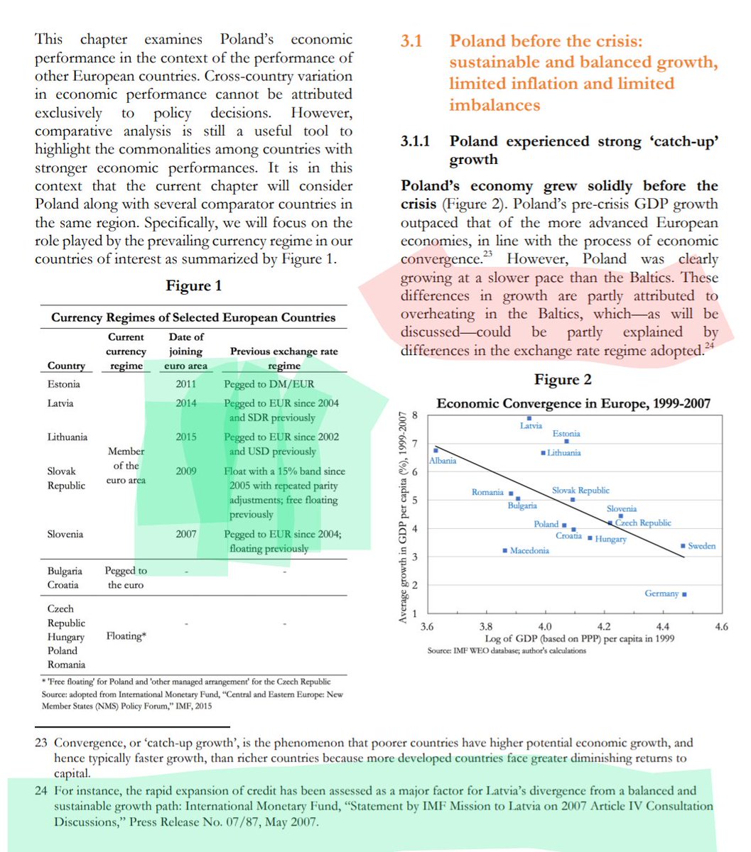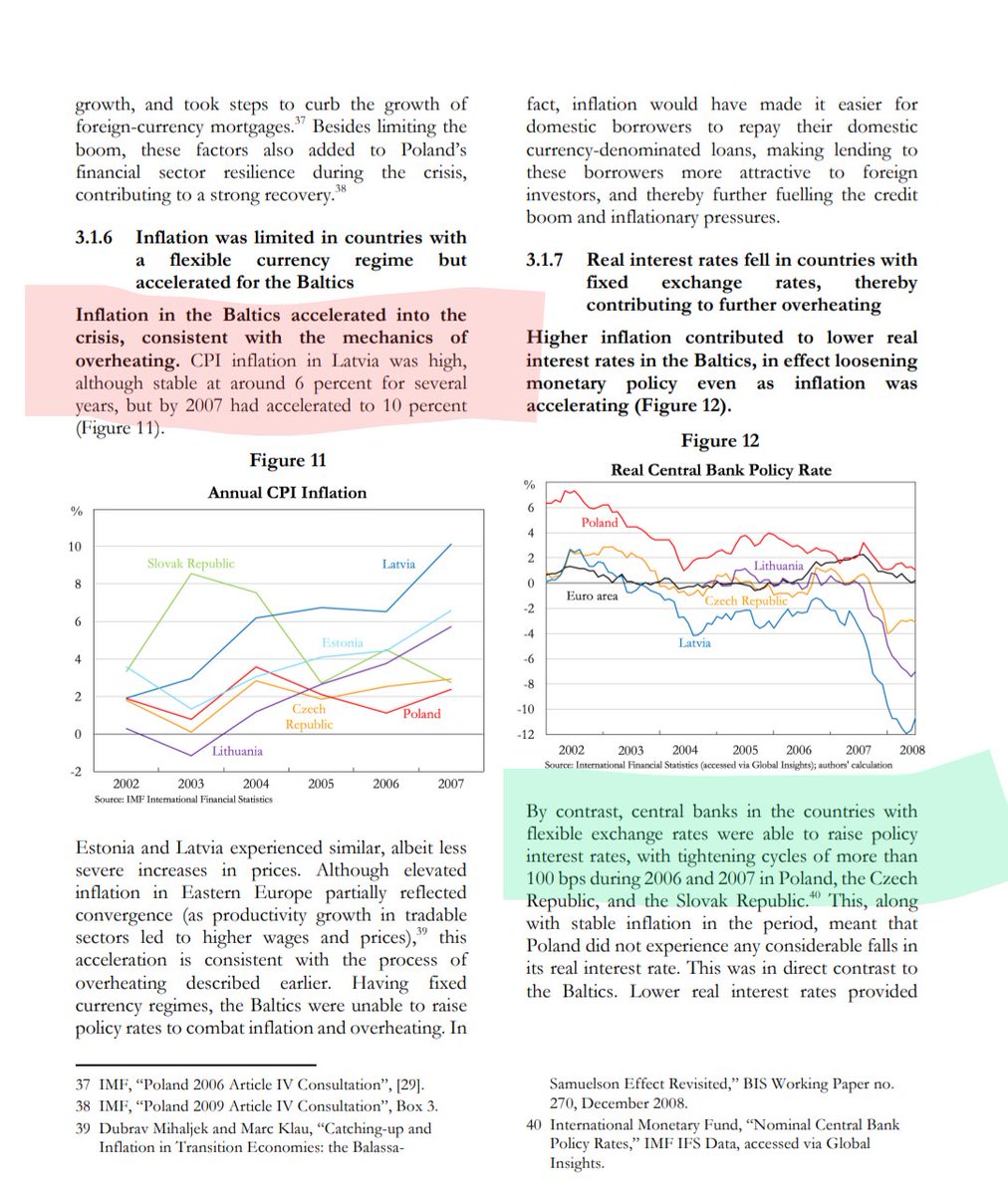 Owszem, np. Bałtowie odnotowali wzrost gospodarczy po akcesji do EMU, ale wzrost 🇵🇱 z własną walutą był stabilniejszy. Przemilcza się też ich zawirowania makroekonomiczne w latach przed przyjęciem €, kiedy kursy walut lokalnych były już sztywno powiązane z €.